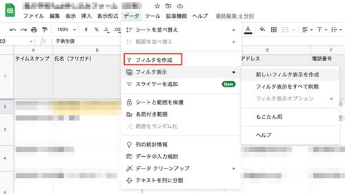 スプレッドシートでの絞り込み表示ですが、個別にフィルタを作成しないと、共有している全員に対して絞り込み表示がリアルタイムに反映され、複数人で同時に作業していると困る場合が出てきます。そうしたくない場合は個別にフィルタを作成すると便利です。 …