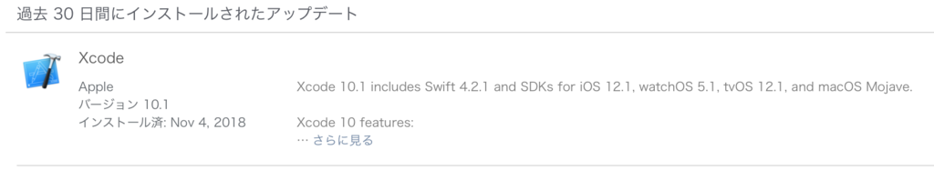 更新がある場合はXcodeの行が追加され「アップデート」のボタンが表示されます。